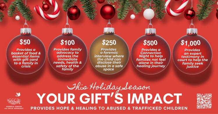five smiling children of diverse races and genders lying in the grass under the Georgia Center for Child Advocacy logo